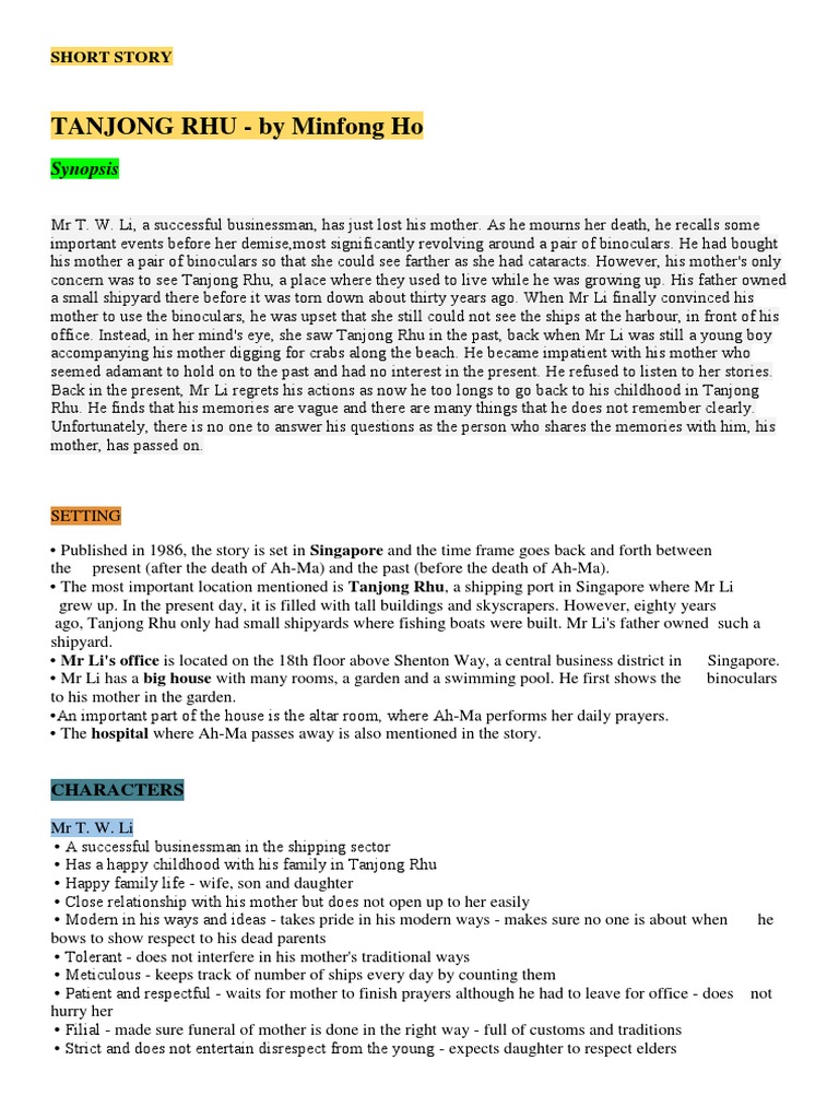 English Languange Form 4 Spm Short Story Tanjung Rhu Youtube